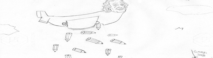 Riporto qua sotto una mia caricatura di Forattini (a matita) datata 2009: